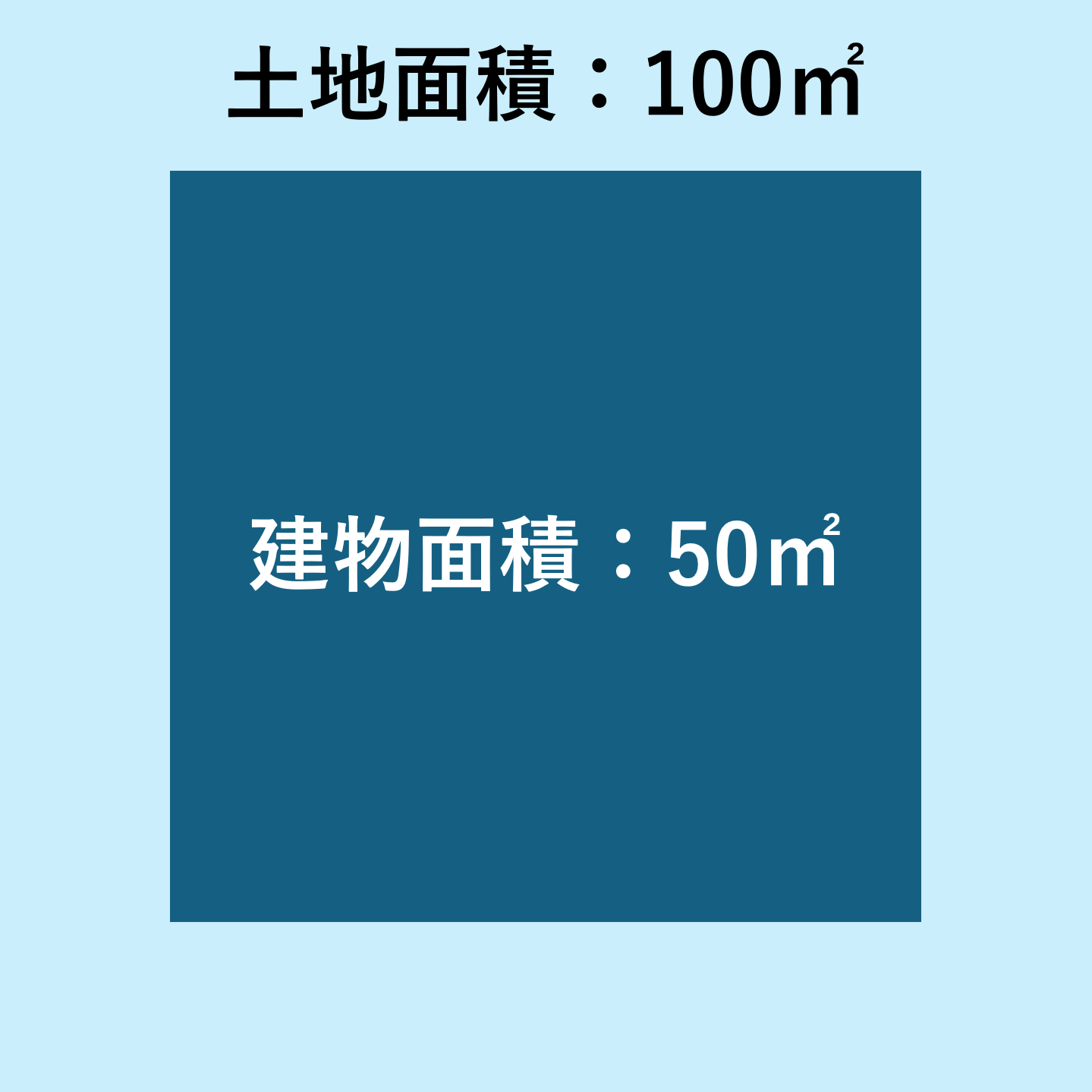 建蔽率50%のエリアでは、土地面積100㎡に対して建物面積50㎡までの家しか建てられない、ということになりますね。