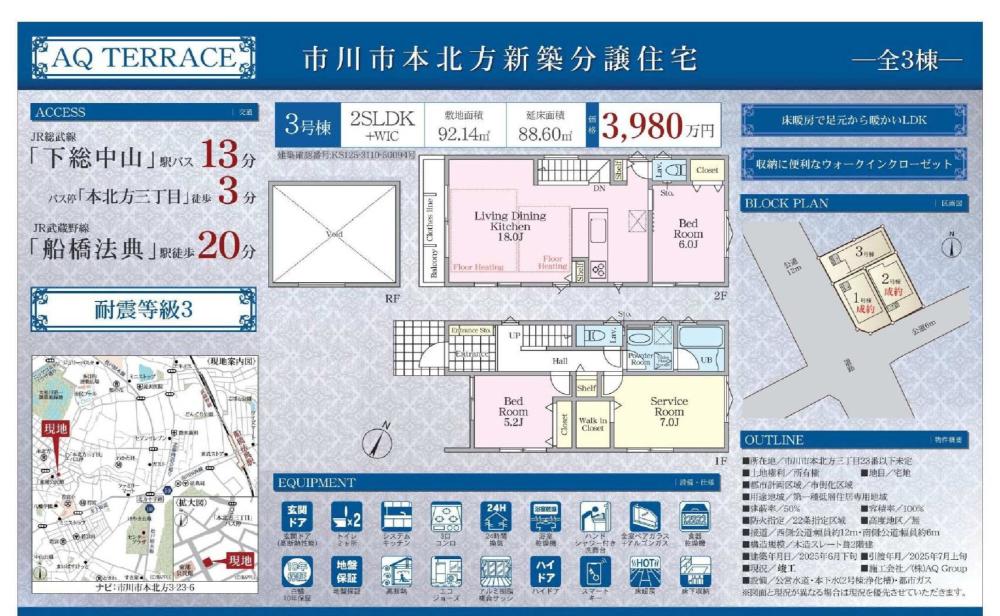 | 交通 | JR総武線「下総中山」駅 バス13分(本北方三丁目バス停まで徒歩3分) JR武蔵野線「船橋法典」駅徒歩20分 | 価格 | 3,980万円 |