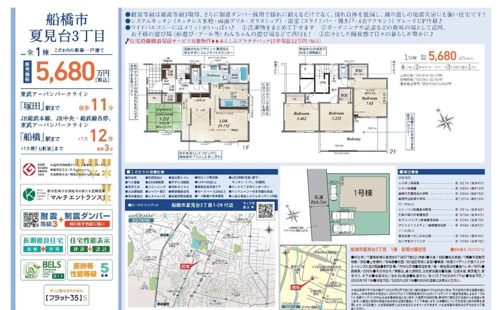 | 交通 | 東武アーバンパークライン「塚田」駅 徒歩11分 JR総武線等「船橋」駅 バス12分 | 価格 | 5,680万円 |