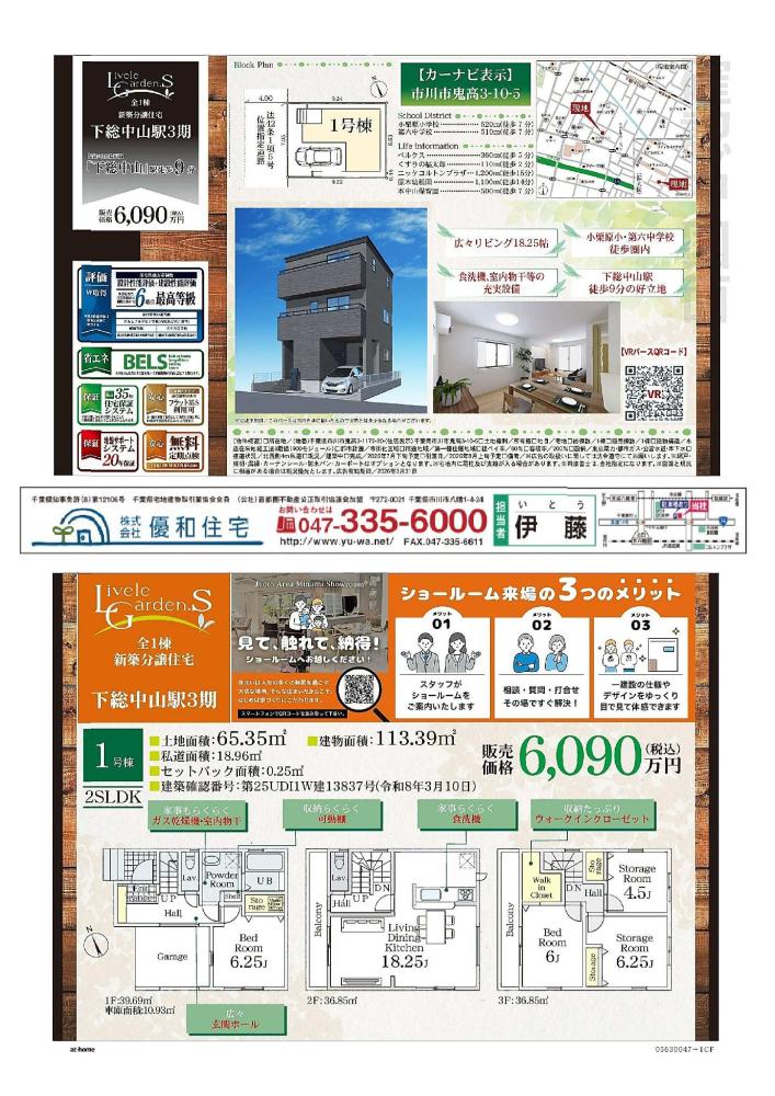 | 交通 | JR総武線「下総中山駅」徒歩9分 | 価格 | 6,090万円 |