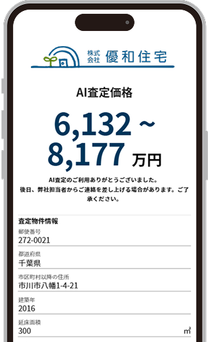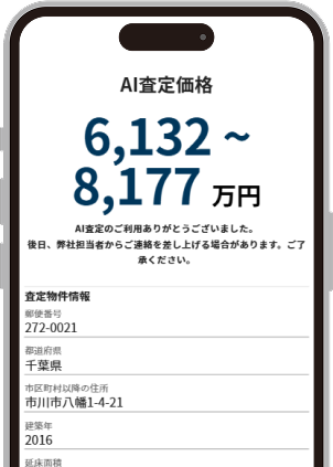 豊富な取り引きデータにより即時AIがご所有の不動産を査定します。
